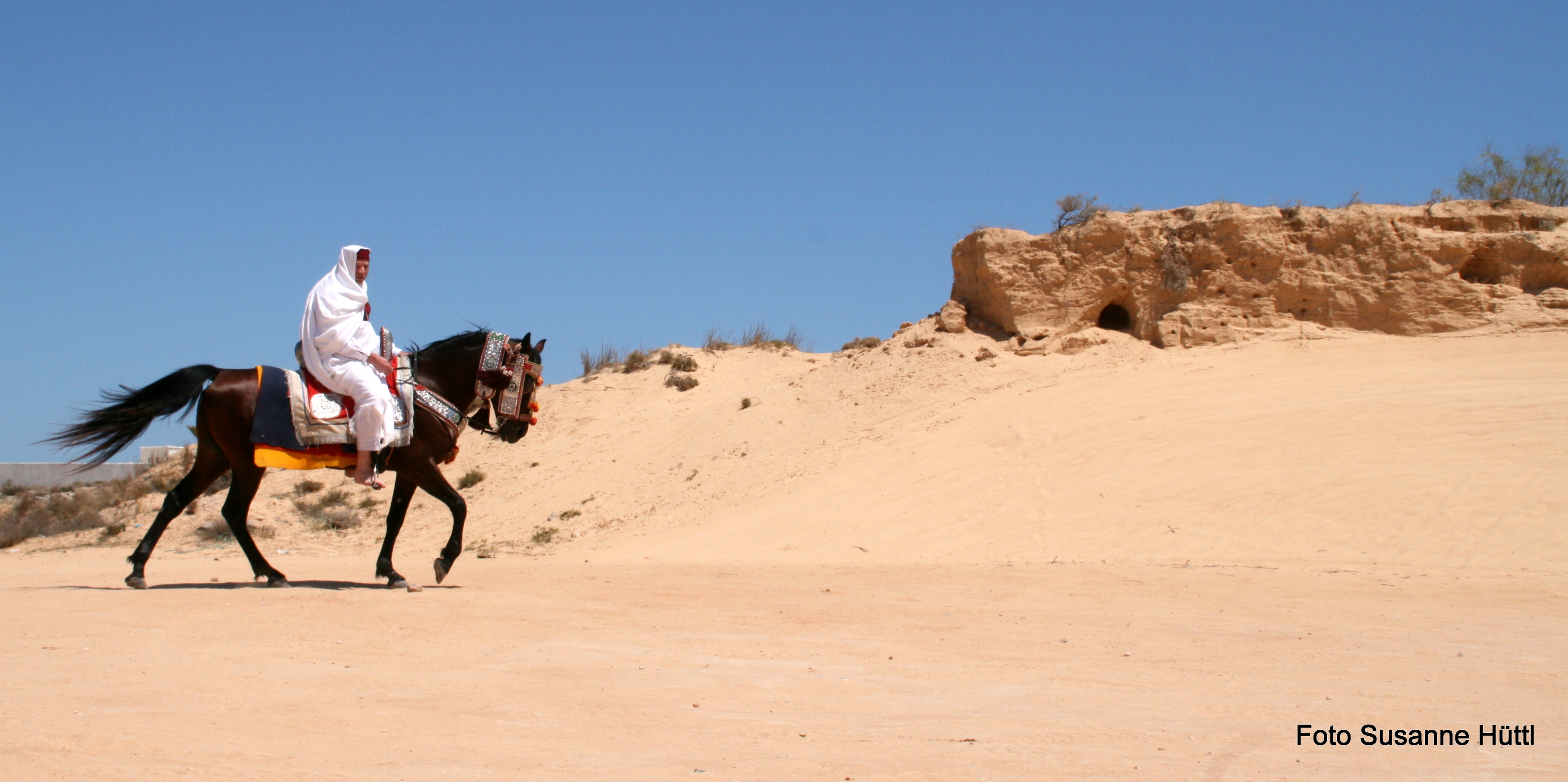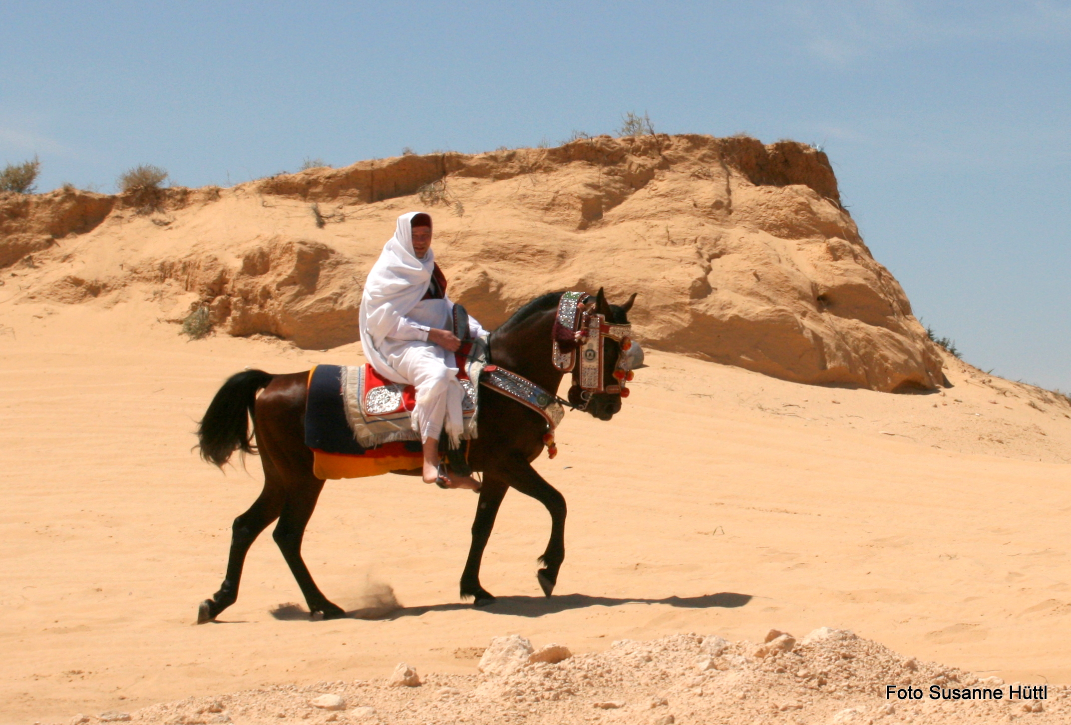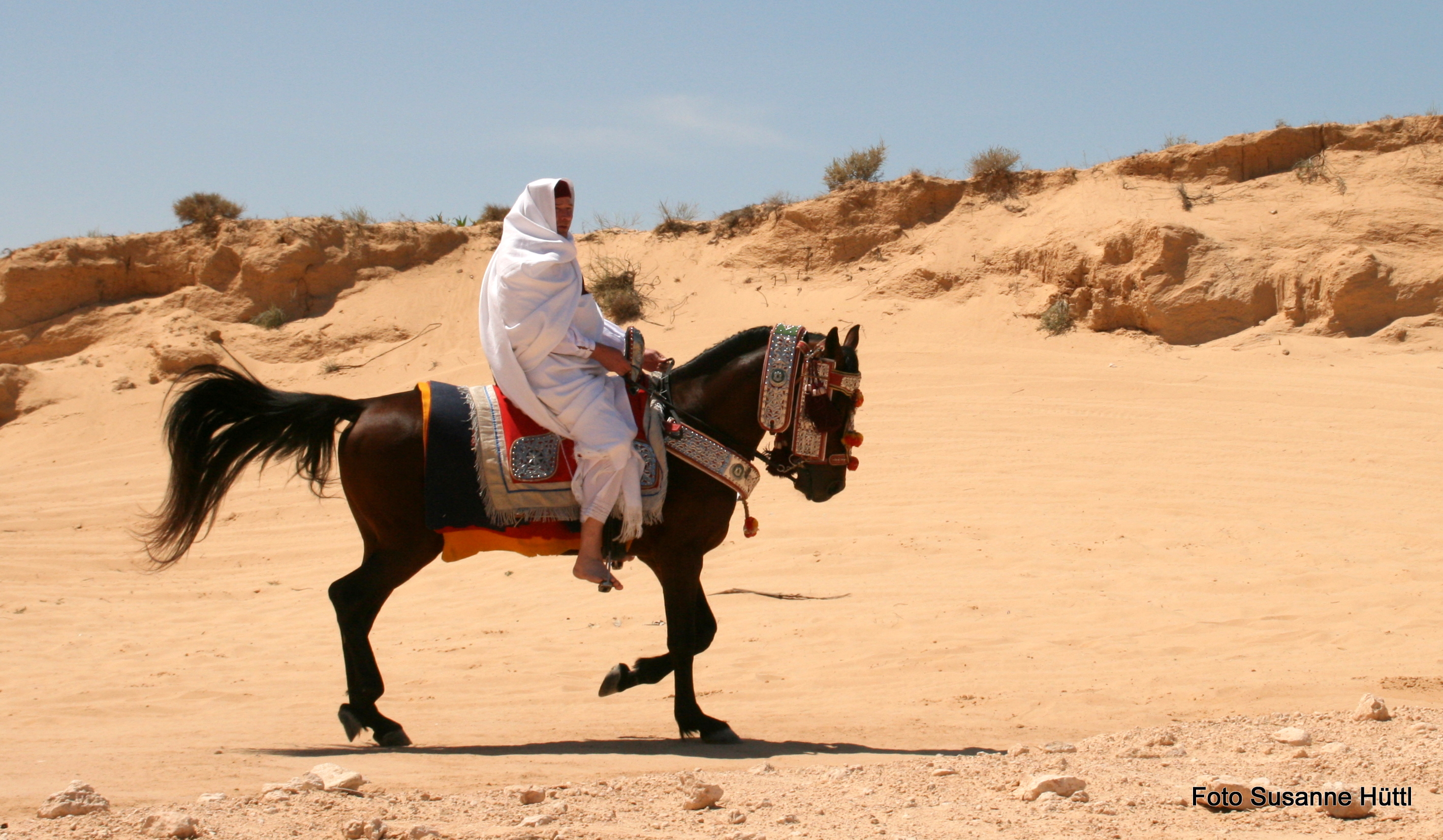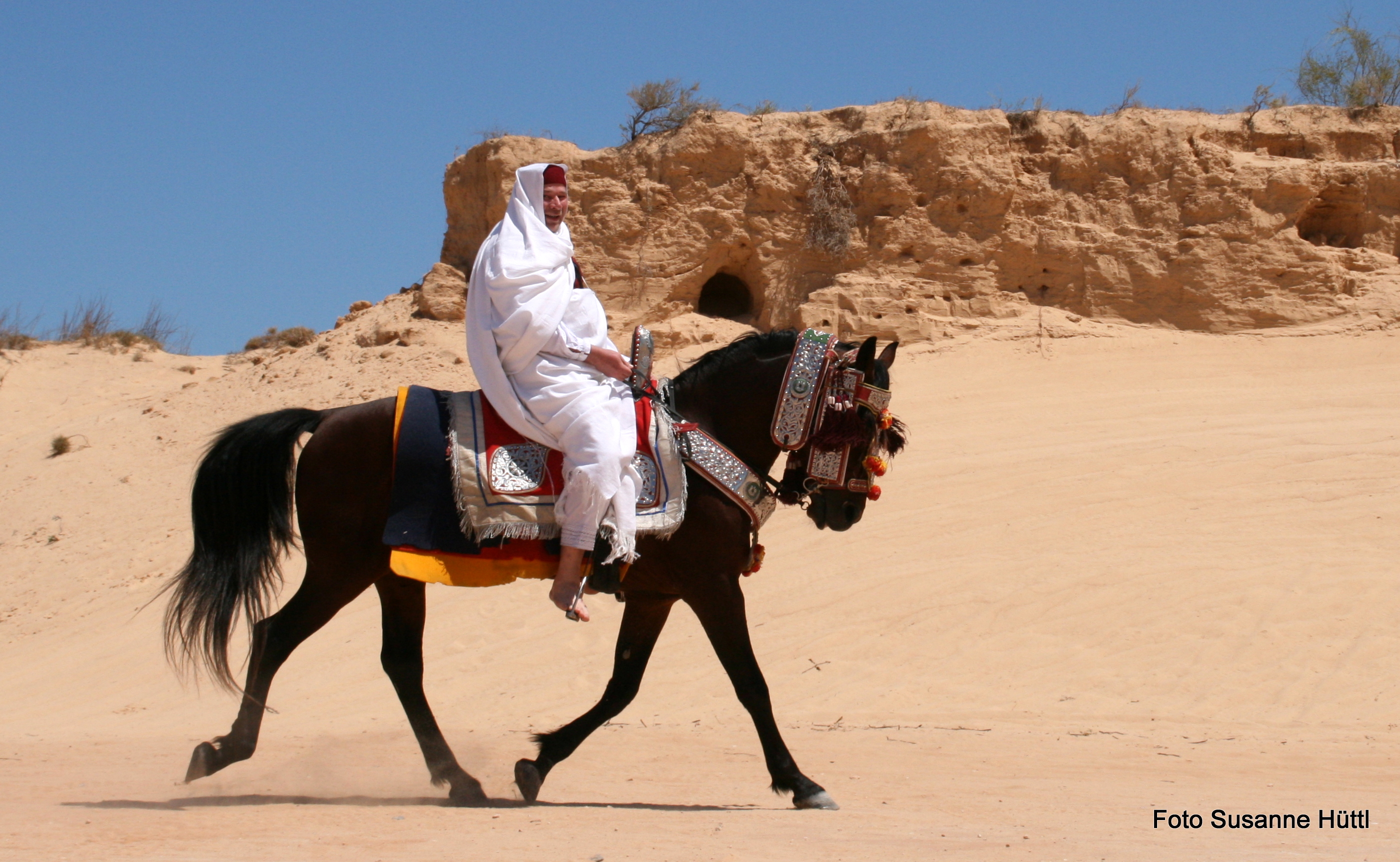 Alles ist hier authentisch: Sattel, Schmuck, Kleidung... und nicht zu vergessen: Berberhengst Bruce.